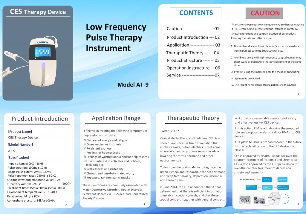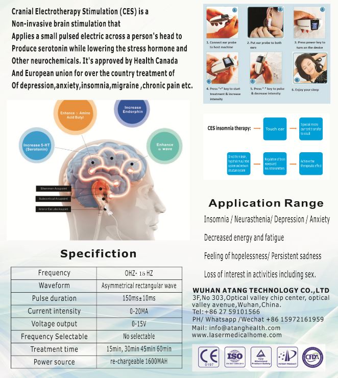 Your moods and emotions, including anxiety, are controlled through electrochemical signals in your brain. When these signals aren’t functioning properly,??the hormones and neurotransmitters that regulate your emotions can become unbalanced. CES AT-9 machine uses low-frequency electrical pulses to stimulate the brain, transfer the signal to the brain and relax it.